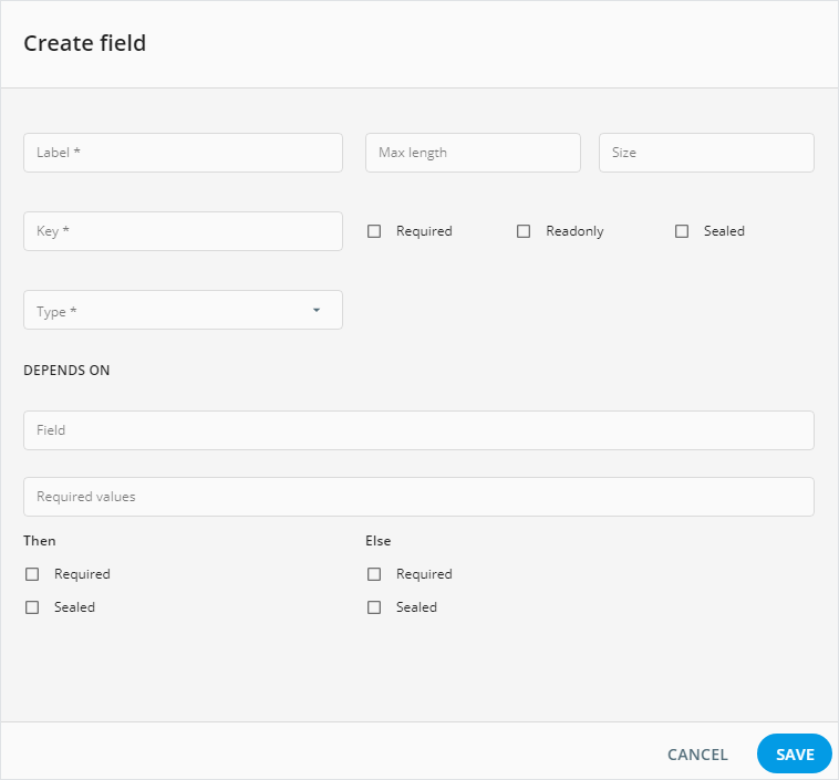 Create fieldpopup, select the required type for the field you're creating and configure it with the options available for the given field type.