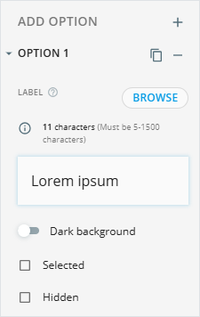 In the ADD OPTION section, you can use the following controls to manage the options: