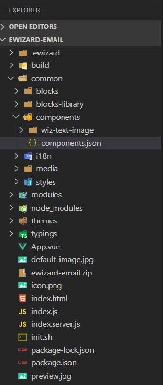 </style>The final step of component creation is configuration of the component for displaying in eWizard sidebar to make it possible to add new component instances to Email using drag & drop. All components that are available in the sidebar are listed in common/components/components.json file.