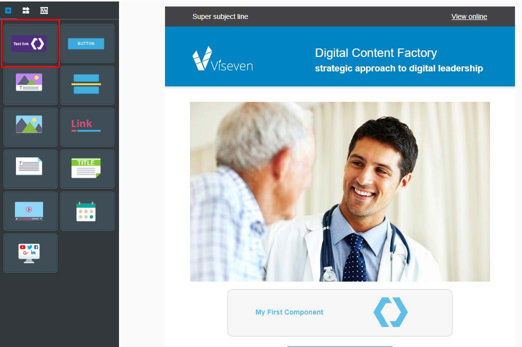 Now we can add the component form the sidebar using drag & drop as usual.
