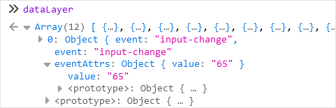 </template>As a result, the data about the name and value change of the input-change and input-change-2 events is sent to the data layer. You can verify it in the browser console.