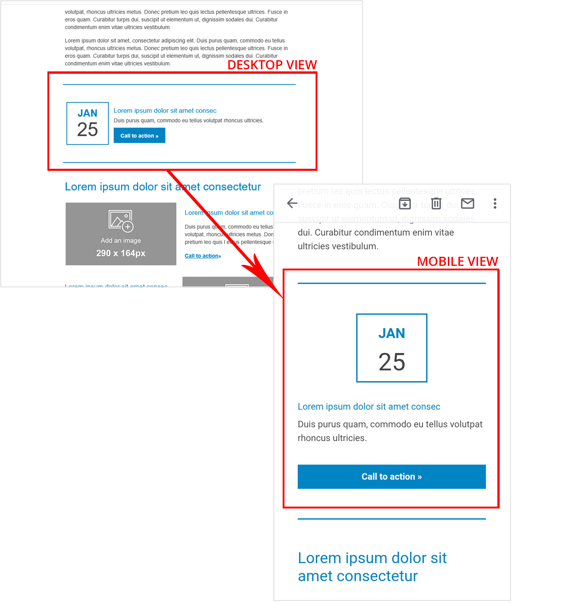 Email wiz-placeholder v2.0 component's columns are displayed vertically on portable devices.