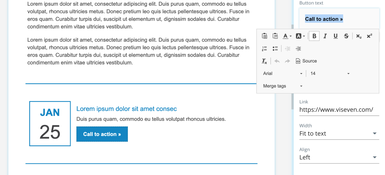 Button enables assigning the open pop-up action with the Actions tab.