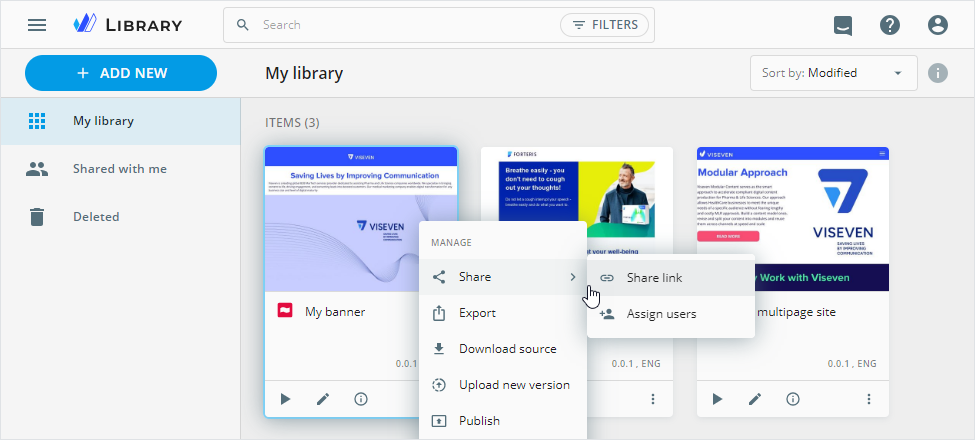 Upon successful creation or upload, your banner appears in My library.