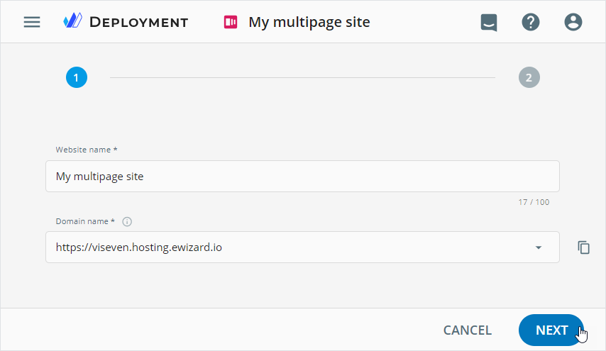 With the Deployment service, you can deliver the multipage sites created in My library to the eWizard hosting platform.